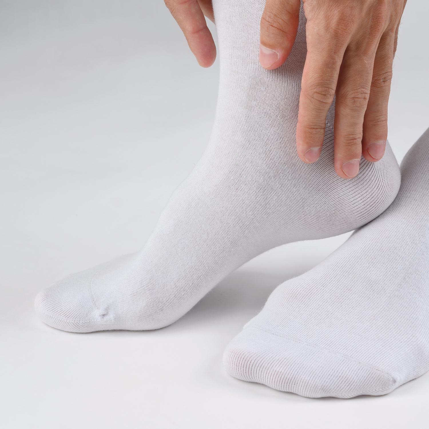 Однотонная модель средней длины с одинарным бортом (манжетом резинки) и неощутимым швом на мыске. Изготовлены на фабрике "Орудьевский трикотаж" в Московской области из хлопка с добавлением полиамида и эластана для износостойкости изделия и комфортной посадки.
