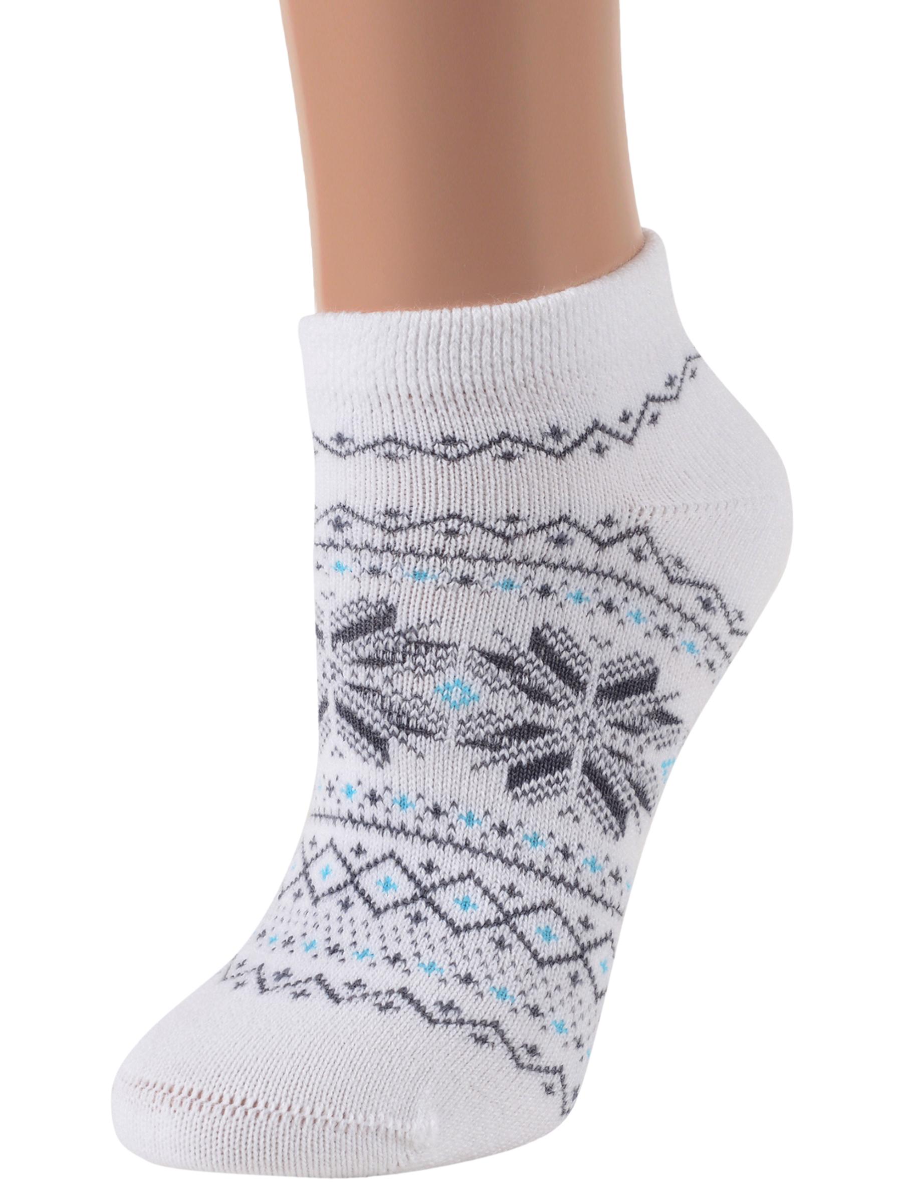 Короткая модель с плоским малоощутимым швом на мыске и двойным бортом (манжетом резинки); оформлена узором.