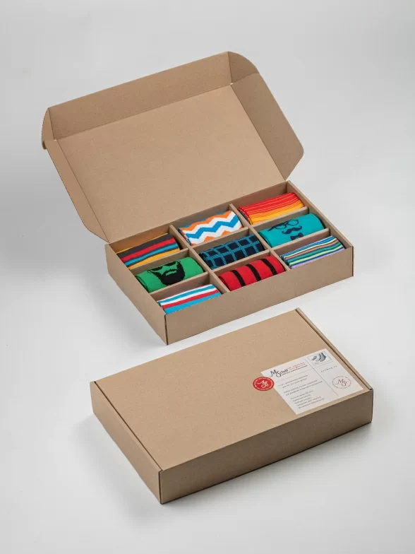 Носки компактно свернуты в аккуратные рулончики внутри стильной фирменной коробки. Для сохранности внешнего вида при транспортировке набор упаковывается в плотный картон.