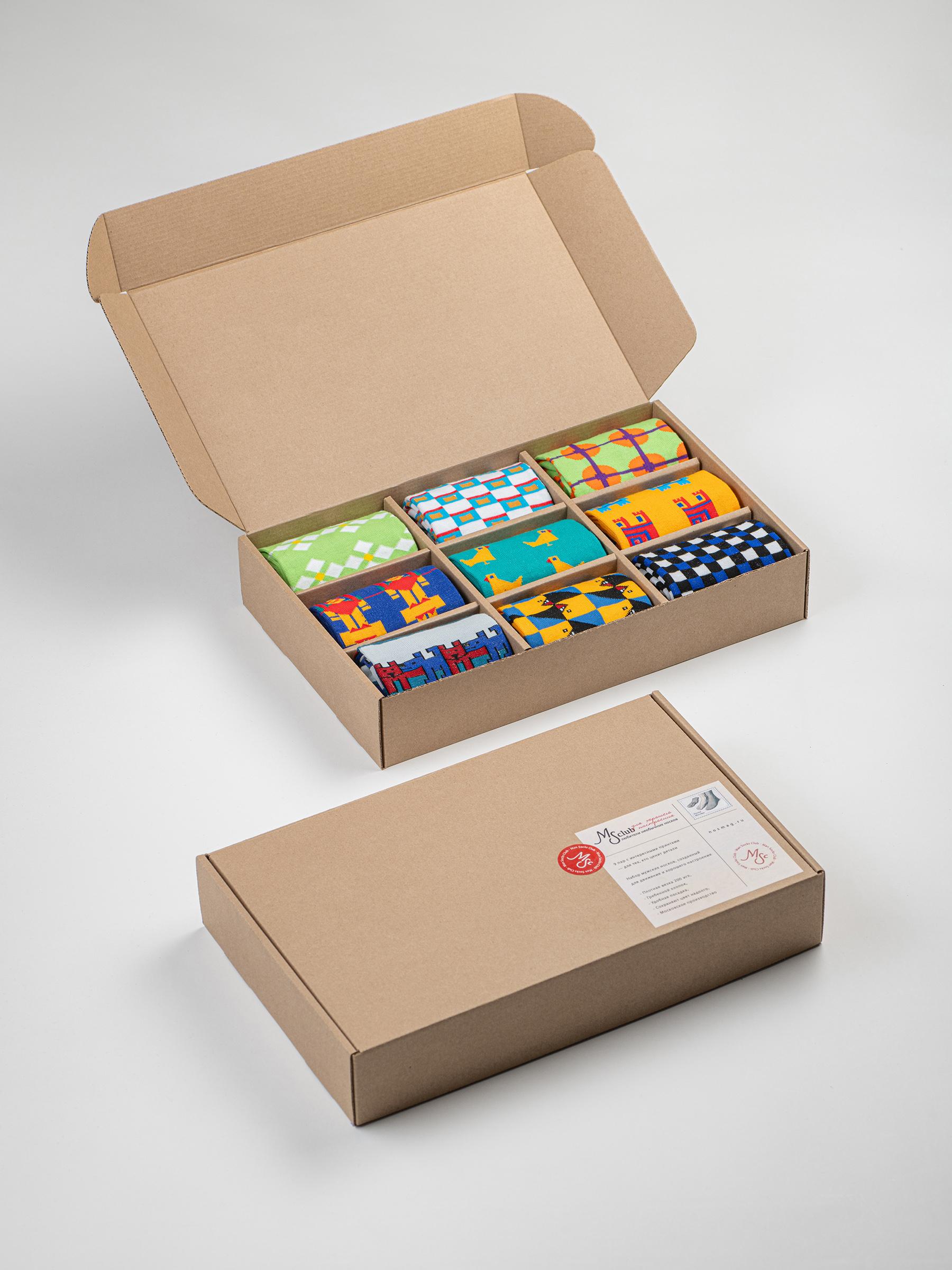 Носки компактно свернуты в аккуратные рулончики внутри стильной фирменной коробки. Для сохранности внешнего вида при транспортировке набор упаковывается в плотный картон.