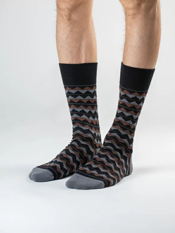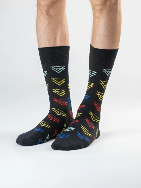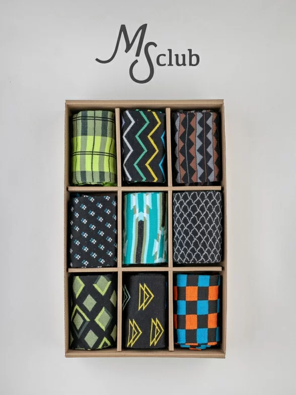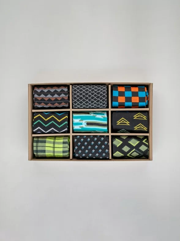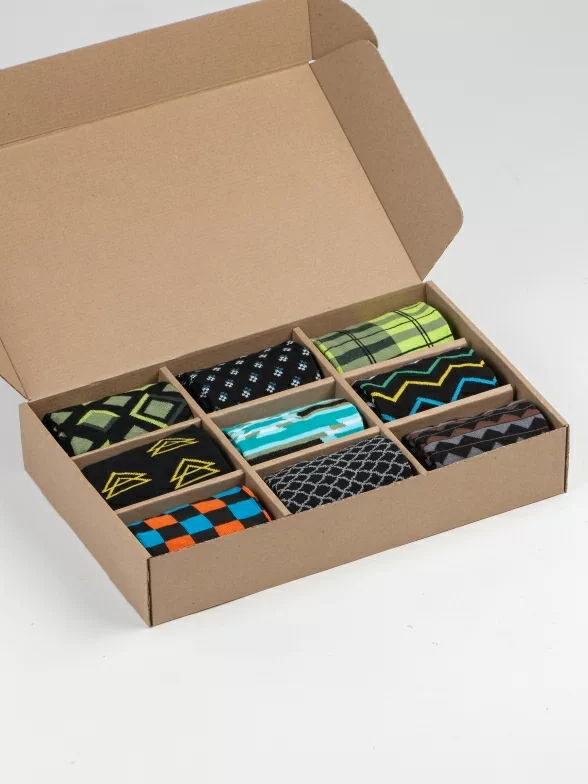 В этот набор "Чужой среди своих" входит 9 пар мужских носков с различными геометрическими принтами, которые подойдут для любого повседневного образа.