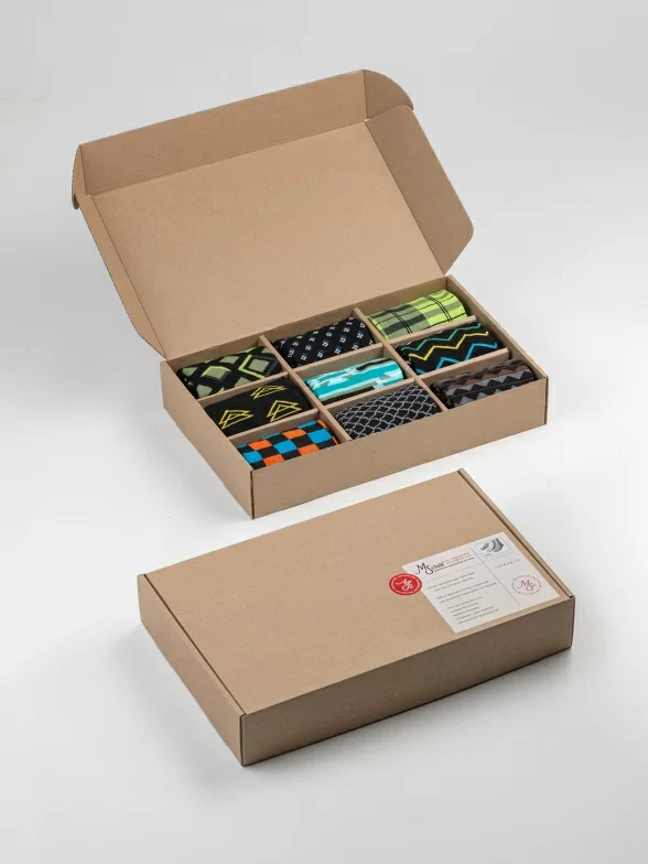 Носки компактно свернуты в аккуратные рулончики внутри стильной фирменной коробки. Для сохранности внешнего вида при транспортировке набор упаковывается в плотный картон.