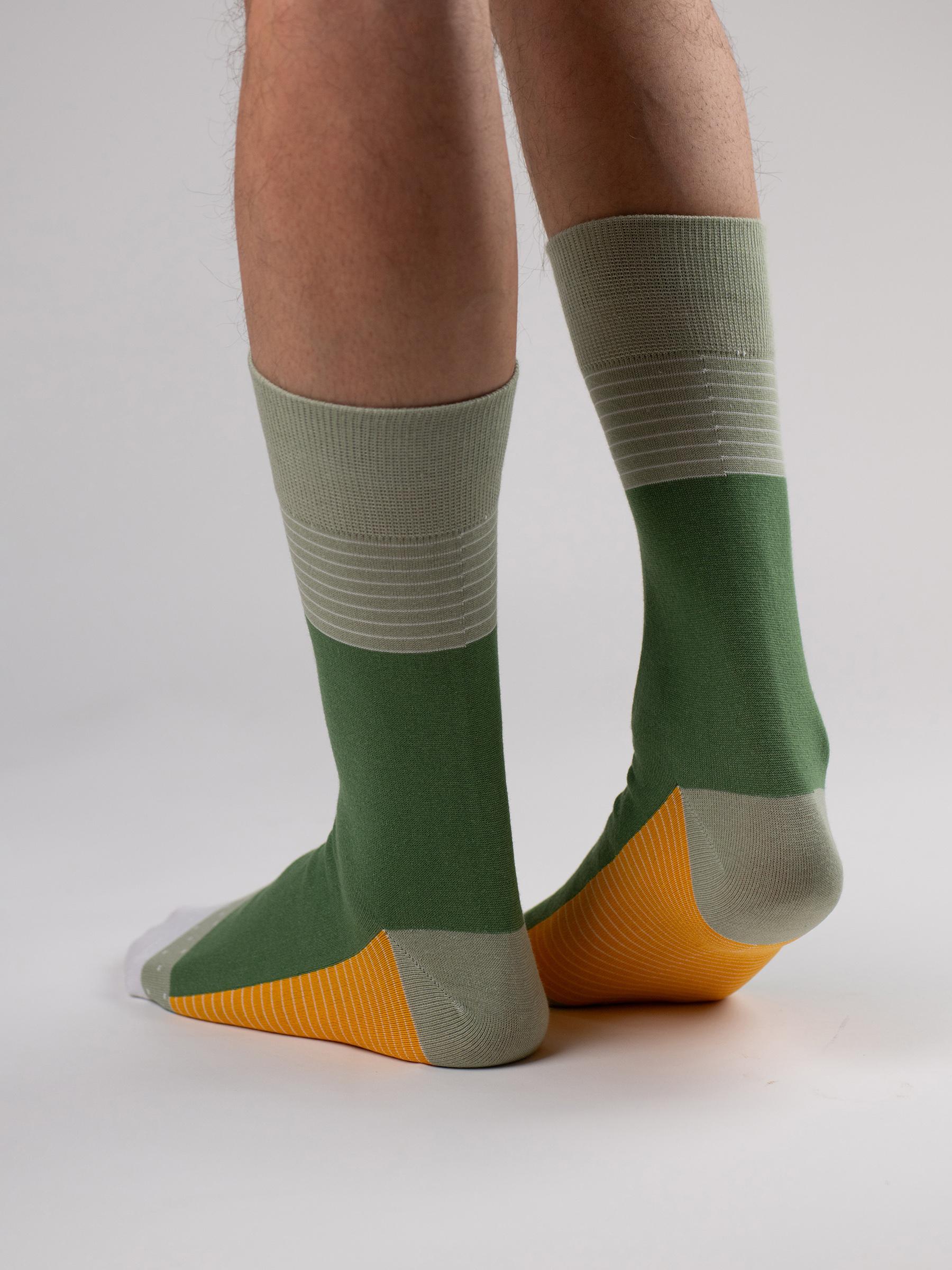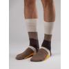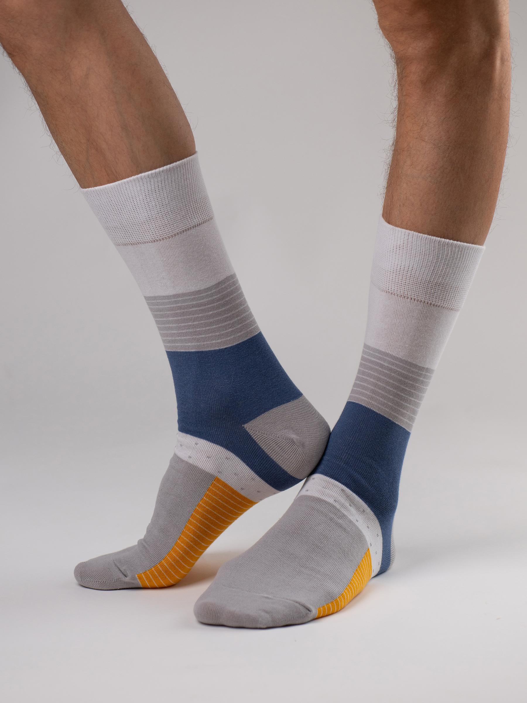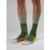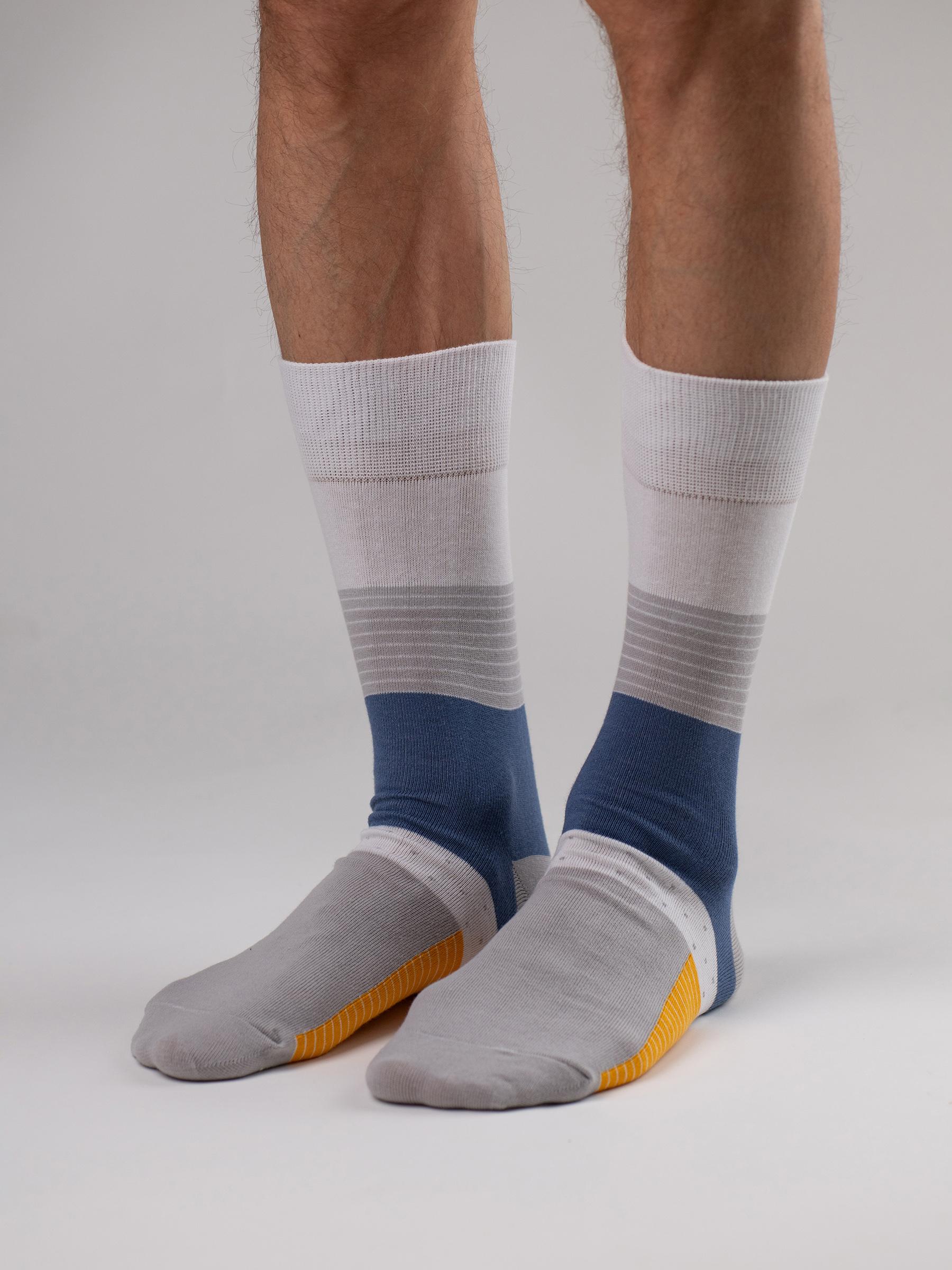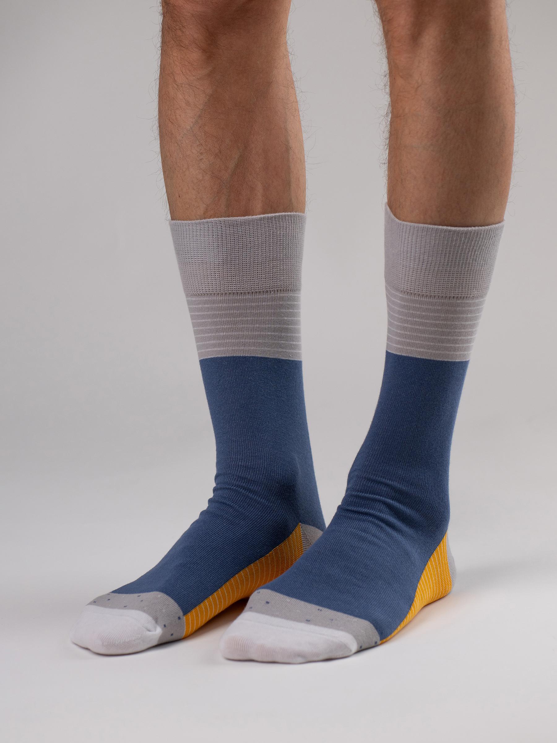 Носки вяжутся на российской фабрике на современных станках высокого класса (с плотностью вязки в 200 игл). Благодаря качественному оборудованию и оптимальному сочетанию гребенного хлопка и синтетических нитей эти носки износостойкие, гладкие и плотные. Двойной широкий борт не пережимает ногу, при этом надежно фиксирует носок на голени.