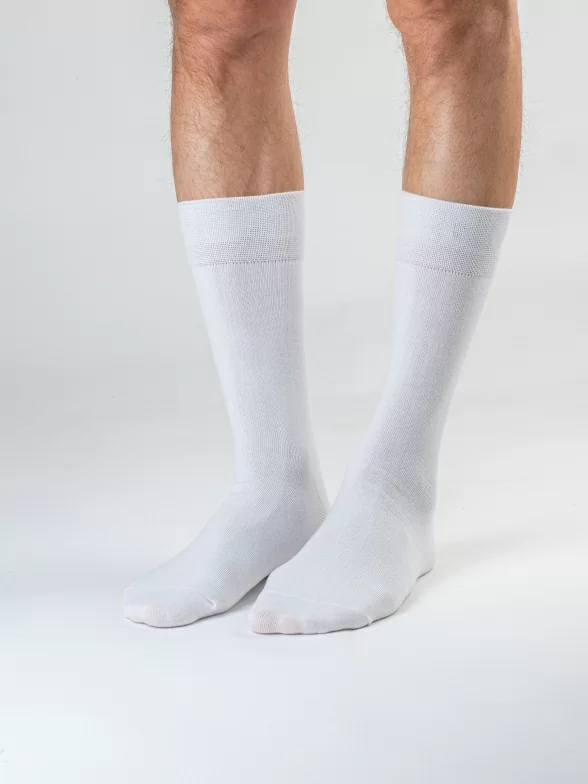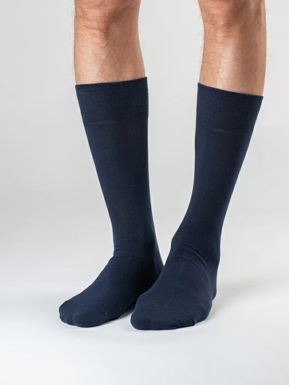 Носки вяжутся на российской фабрике на современных станках высокого класса (с плотностью вязки в 200 игл). Благодаря качественному оборудованию и оптимальному сочетанию гребенного хлопка и синтетических нитей эти носки износостойкие, гладкие и плотные. Двойной широкий борт не пережимает ногу, при этом надежно фиксирует носок на голени.