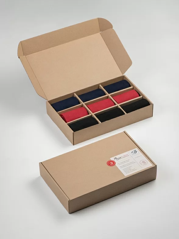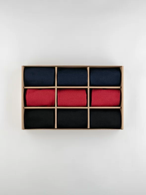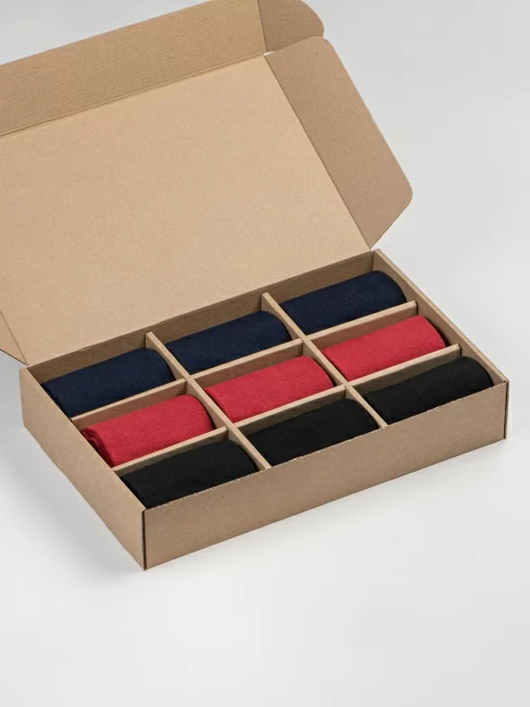 Носки компактно свернуты в аккуратные рулончики внутри стильной фирменной коробки. Для сохранности внешнего вида при транспортировке набор упаковывается в плотный картон.