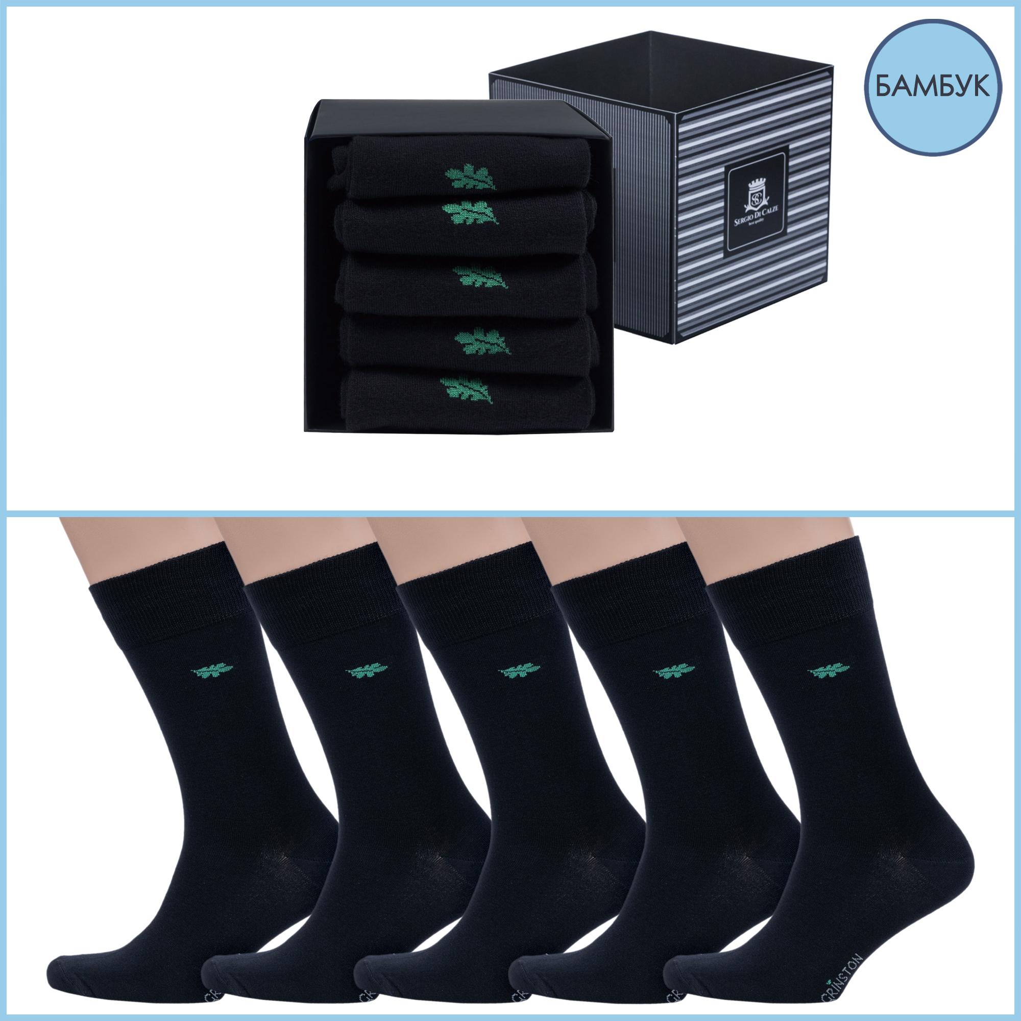 Набор из 5 пар мужских бамбуковых носков (ТМ Grinston socks) PG-15d11-5/0, черные