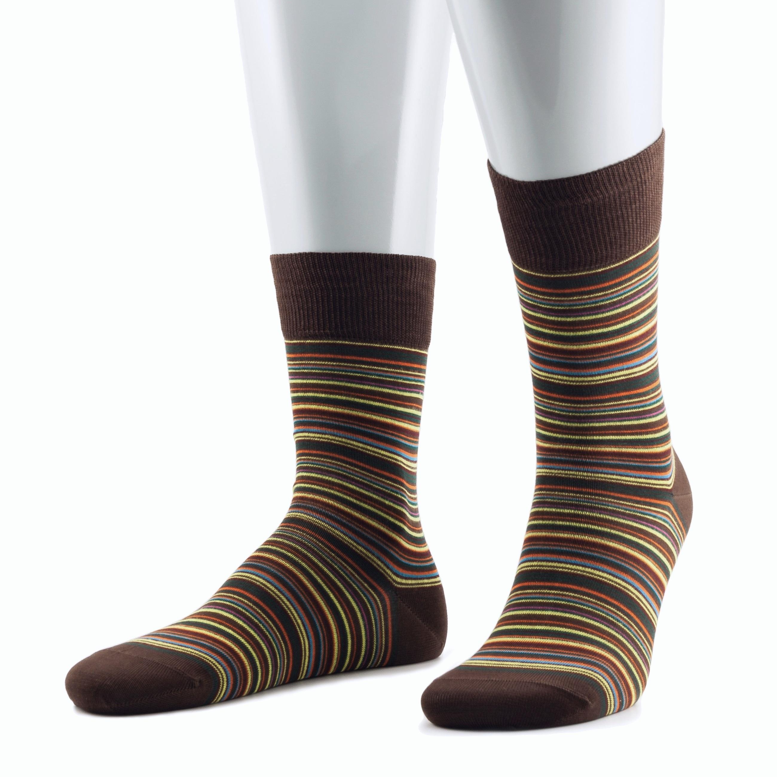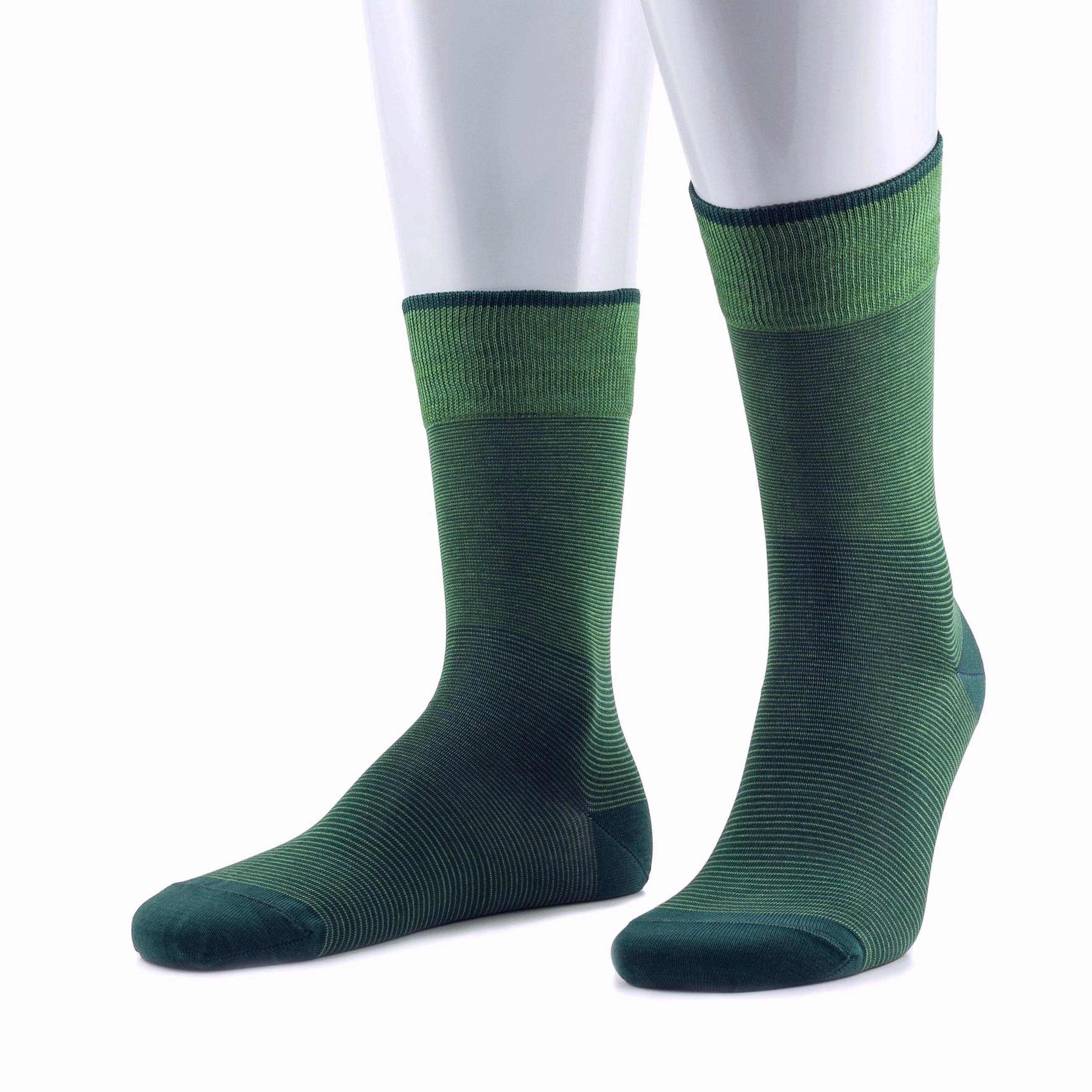 - По 1 паре зеленых, фиолетовых и бордовых артикула 17SC4. Модель средней длины в мелкую полоску с двойным бортом (манжетом резинки) и плоским малоощутимым швом на мыске.