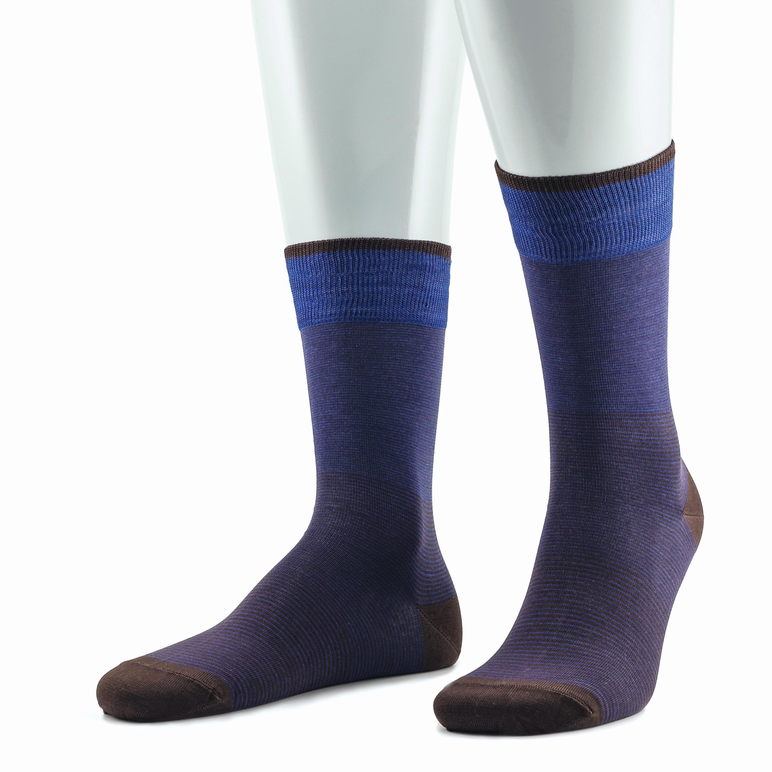 - По 1 паре черных, синих и коричневых артикула 16SC3. Модель средней длины в полоску с двойным бортом(манжетом резинки) и плоским малоощутимым швом на мыске.