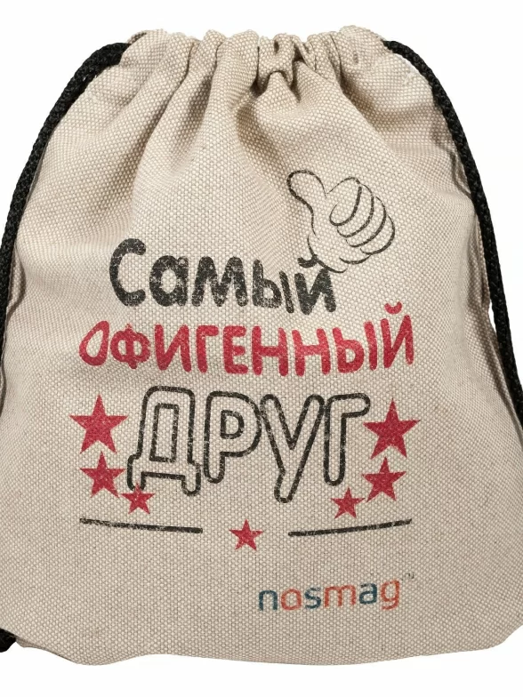 Подарите офигенному другу офигенные носки! А в такой необычной и полезной подарочной упаковке они точно принесут ещё больше радости. Однотонные носки классической длины, произведенные на фабрике RuSocks, отличаются высоким содержанием натурального хлопка и очень удобной резинкой. Сам мешок – не просто упаковка. Он удобный, вместительный и необычный. Его можно носить как мини-рюкзак или хранить в нём вещи дома. Аксессуар изготовлен из хлопка и льна, а вместо застежки используются удобные затяжки.