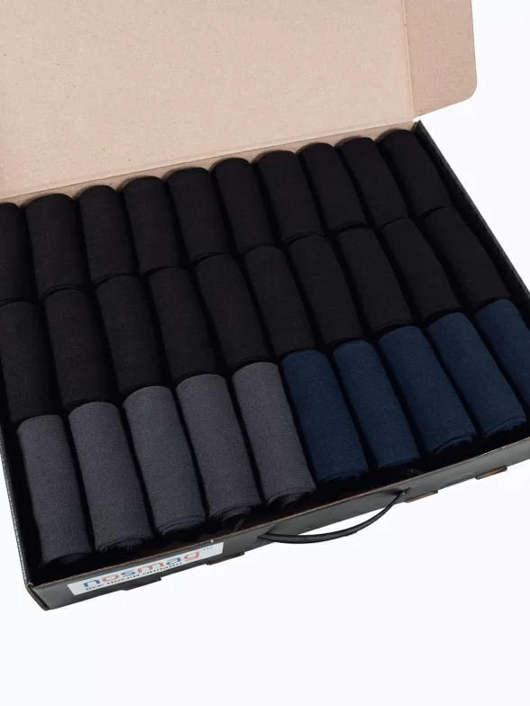 Набор с качественными носками класса "Бизнес", в котором представлена одна модель в разных расцветках, позволит иметь подходящую пару под любой костюм.