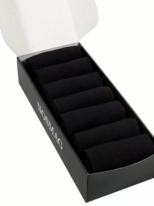 В набор входит 7 пар однотонных черных мужских носков бренда RuSocks. Модель средней длины высокой плотности вязки, отличаются одинарным бортом (манжетом резинки) и неощутимым швом!