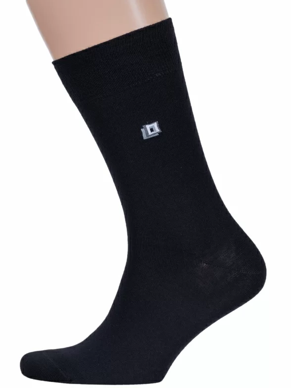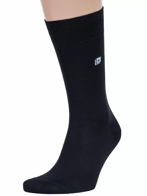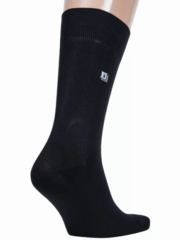 Носки классической длины однотонные с небольшим принтом на паголенке и с двойным бортом.
