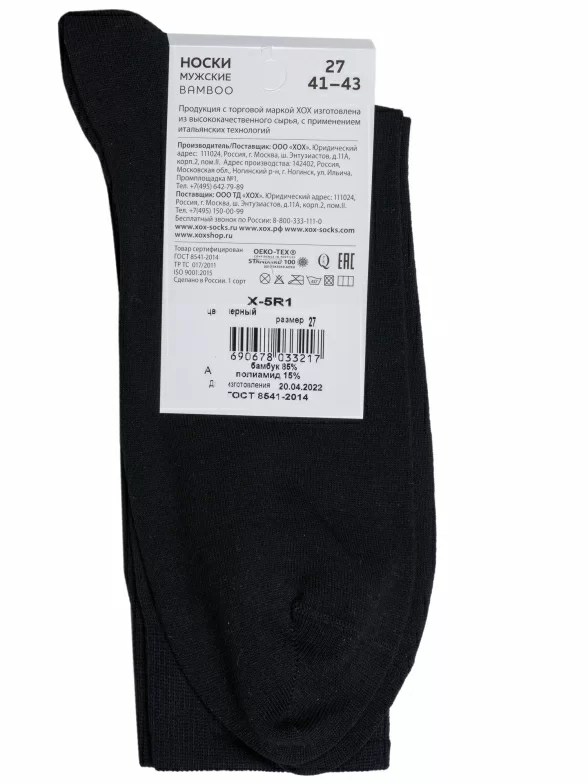 Набор из 7 пар мужских бамбуковых носков (ХОХ), X-5R1-7, черные