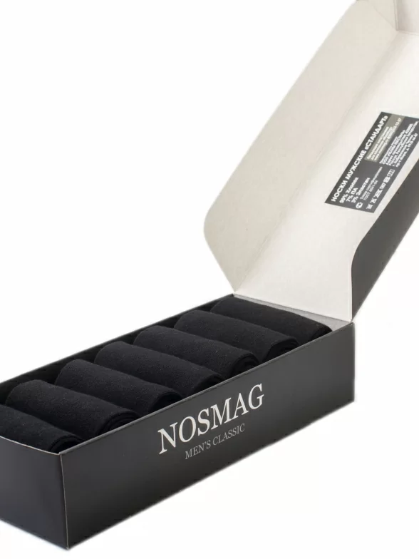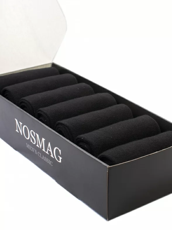 Какой кейс подарить: 20 пар, 30 пар или, может быть, 100? Много? А если просто попробовать, то 7 – красивое, а главное, счастливое число. В этой подарочной коробке находится семь пар очень качественных носков из хлопка с добавлением лайкры – очень мягких и приятных к телу. Носки однотонные, классической длины. Они произведены на фабрике в г. Набережные Челны и связаны на современном оборудовании. На ноге такие носки сидят идеально, не сползая. По этим причинам они наилучшим образом подходят под деловую и повседневную одежду, а уровень комфорта вы оцените сами!