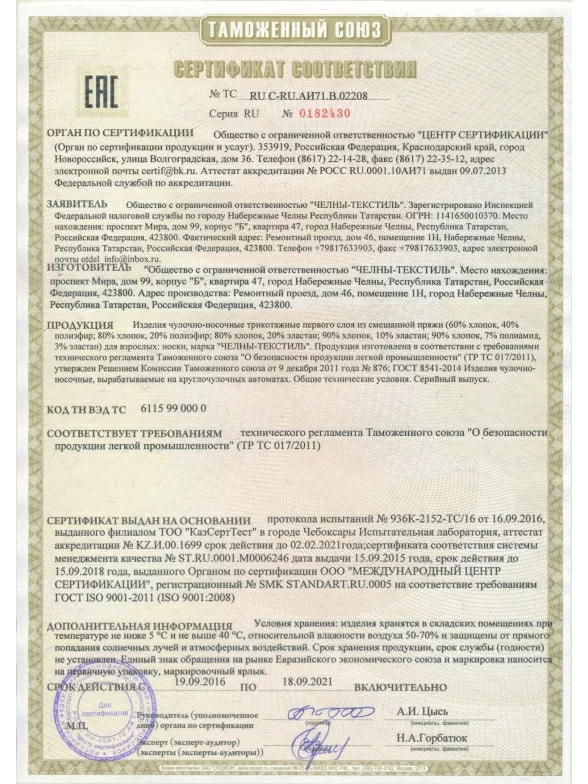 - Производитель носковфабрика «Челны Текстиль», г. Набережные Челны, Россия