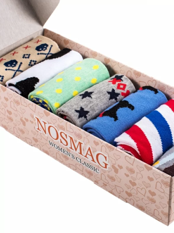 Набор качественных женских носков от XOX. В красивую коробку уложено семь пар носков классической длины, каждая пара в своем дизайне. Плотный трикотаж с высоким содержанием хлопка очень приятен к телу. Такие носки точно будут радовать!