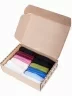 Все носки без индивидуальных фабричных этикеток сложены рулончиками в фирменную коробку, которая дополнительно упаковывается в плотный транспортный картон для сохранности при доставке.