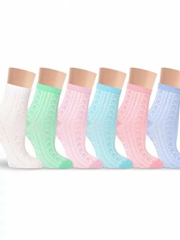 Набор из семи пар женских носков в разных цветах. Они оформлены изящным орнаментом, а резинка декорирована рельефным краем. Носки сделаны из трикотажа на основе вискозы с добавлением эластана, который обеспечивает комфортную посадку, а натуральный шелк – неповторимую фактуру.
