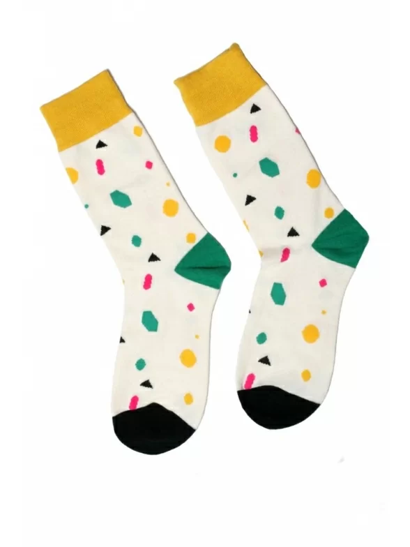 Создавая этот принт дизайнеры марки “Все радости” вдохновлялся сладкоежками, так на носках появились мармелад, леденцы, лимонад и шоколад. Носки классической длины связаны из хлопка с добавлением полиамида и эластана.