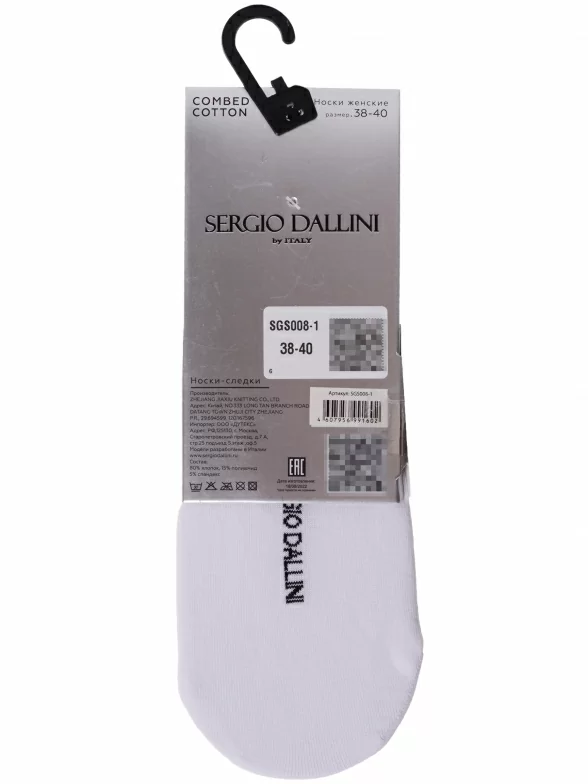 Летние женские подследники, цвет белый, классические, шов плоский, принт (рисунок): логотип, однотонный, состав: 80% хлопок, 15% полиамид, 5% эластан, арт. SGS008-1. Производитель «Китай, страна бренда - Италия» под брендом «Sergio dallini».