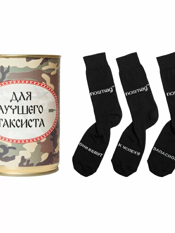 Находится за рулем железного коня часами и даже сутками гораздо приятнее, когда носки удобные. Носки в этой банке - сказочно удобные, а еще они оформлены надписями на удачу, поэтому пассажиры должны попадаться щедрые. В оригинальной банке находится три носка, один из которых - запасной. Теперь у лучшего таксиста будет не только пятое колесо на случай неприятности, но и третий носок на случай капризов стиральной машины. Каждый из носков оформлен приятной надписью, сулящей только хорошее!