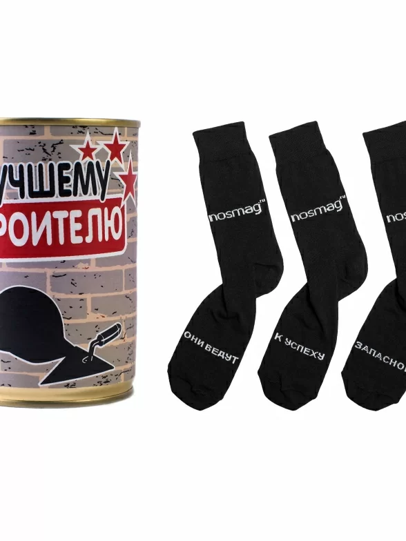 На стройке бывает всякое, но комфорт очень важен для каждого, кто занимается столь ответственным делом. Качественные носки - это конечно не все, но уже начало, а когда их дарят в такой необычной упаковке как банка с персонализированной этикеткой - это еще и приятно. В банке находится три носка, один из которых запасной. Принт с надписями, притягивающими удачу, позволит всем делам спорится, и каждый объект будет сдан в срок, а любая стройка пройдет без подводных камней.