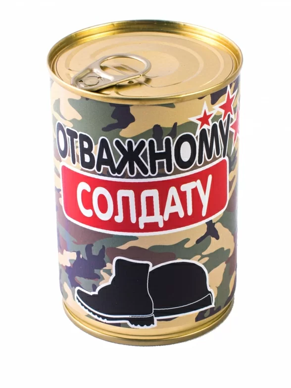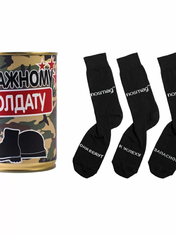 Солдат спит - служба идет. Солдат идет - служба тоже. Когда носки удобные, солдату легче идти, а значит и спать будет хотеться меньше. Банка с носками обязательно порадует каждого военнослужащего: это эффектный персонализированный подарок, который, к тому же, очень практичен. В банке находится пара качественных носков и один запасной - как и подобает в военном деле, все должно быть с достаточным ресурсом и запасом.
