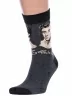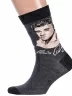 Круглогодичные средней длины носки унисекс, цвет темно-серый, повседневные, возможно бесшовные, принт (рисунок): произведения искусства / цитаты, знаменитости, крупные контрастные рисунки, надписи, музыка, люди, контрастные пятка / мысок / резинка, с узором, состав: 75% хлопок, 23% полиамид, 2% эластан, арт. Нарт277. Производитель «Китай, страна бренда - Россия» под брендом «Hobby line».