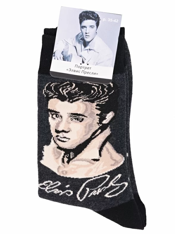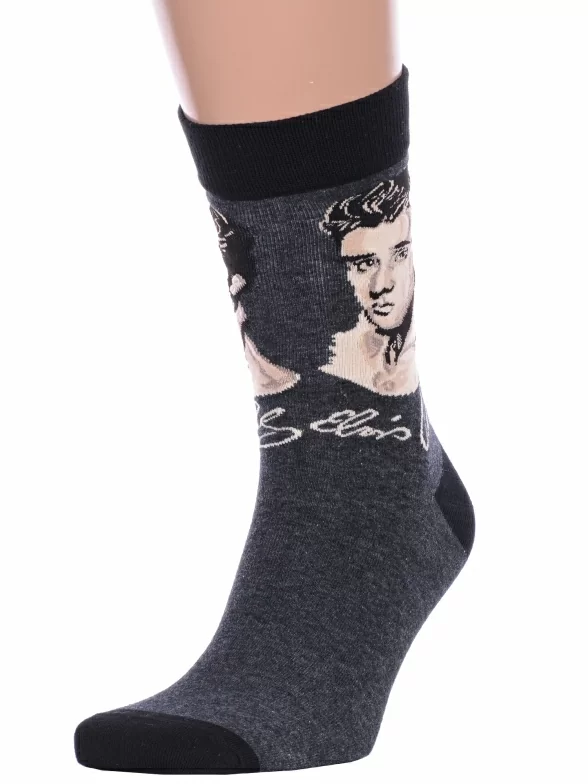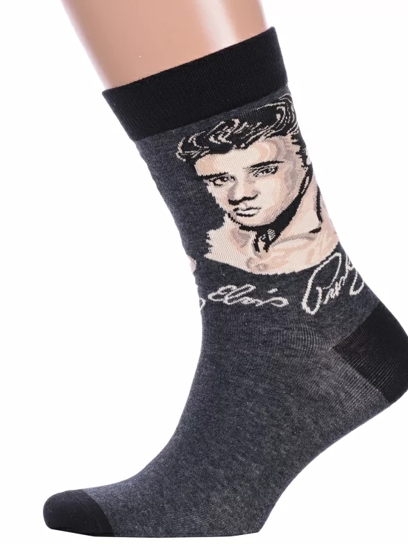 Носки ART дизайн Hobby Line, нарт277, ТЕМНО-СЕРЫЕ Портрет "Элвис Пресли"