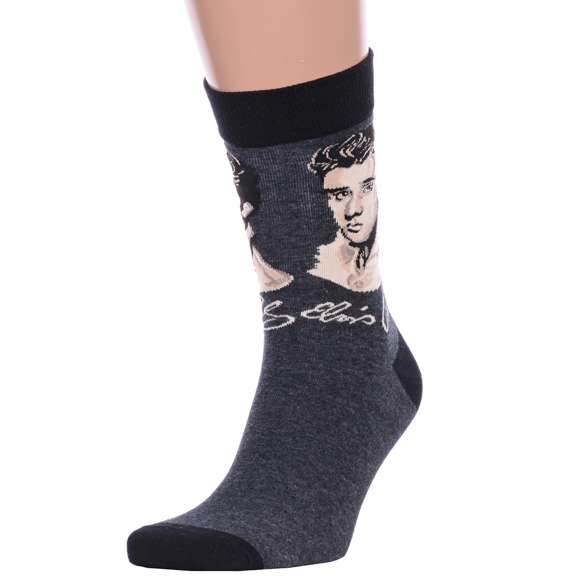 Носки ART дизайн Hobby Line нарт277, ТЕМНО-СЕРЫЕ Портрет "Элвис Пресли"