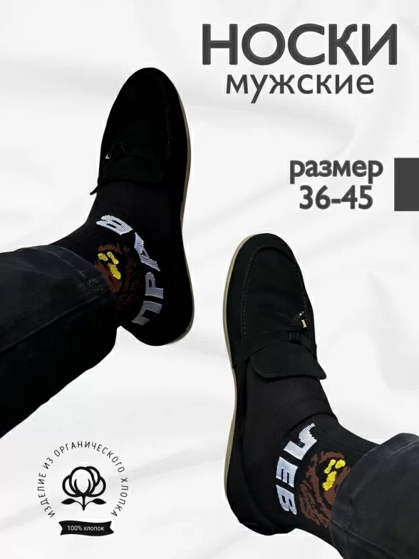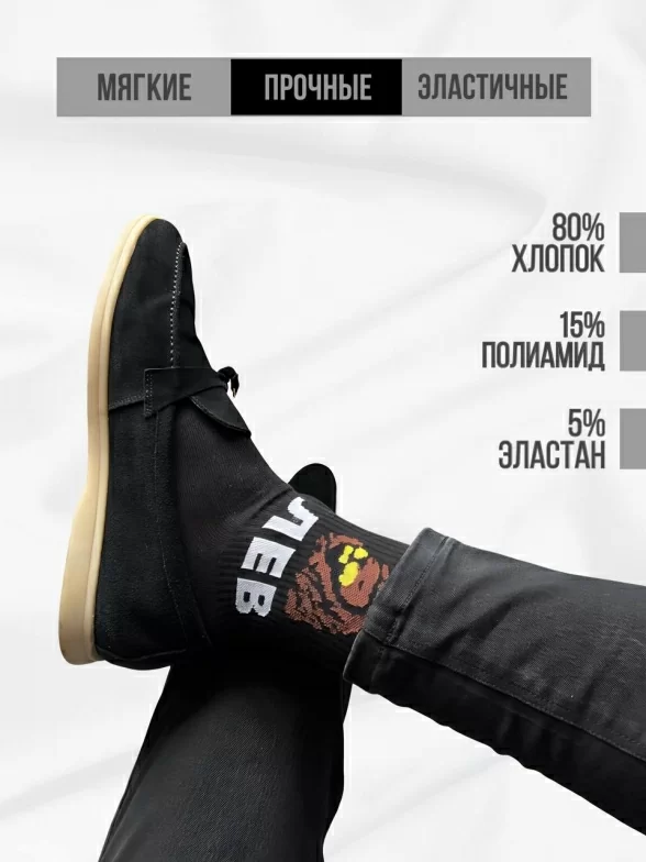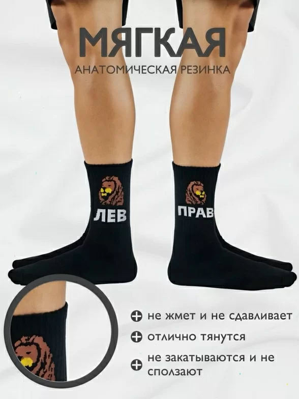 Круглогодичные средней длины мужские носки, цвет черный, повседневные, шов обычный (не бесшовные), принт (рисунок): в рубчик, животные, состав: 80% хлопок, 15% полиамид, 5% эластан, арт. ЛЕВ ПРАВ. Производитель «TIME FIRE» Россия под брендом «Time fire».