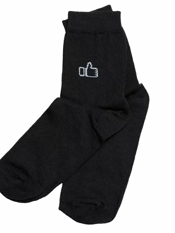 Детские носки сделаны из хлопка с добавлением полиамида и эластана. Модель украшена принтом в виде кнопки “Лайк”.