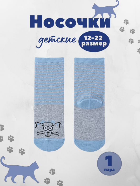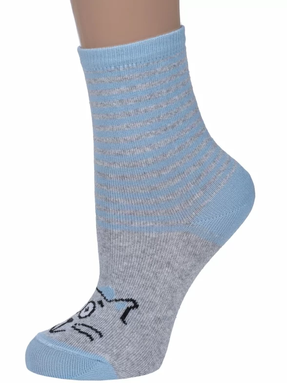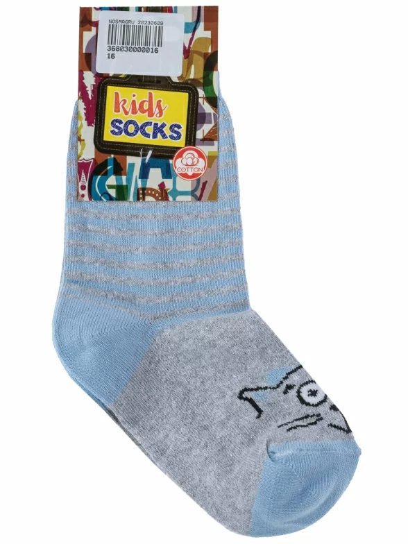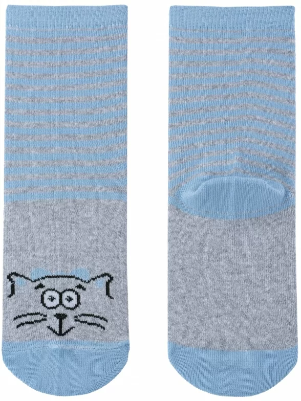 Круглогодичные средней длины детские носки, цвет серый-голубой, повседневные, шов обычный (не бесшовные), принт (рисунок): животные, с узором, состав: 80% хлопок, 18% полиамид, 2% эластан, арт. С183. Производитель «ООО Альтаир, г. Орск, Оренбургская обл, Россия» под брендом «Альтаир».