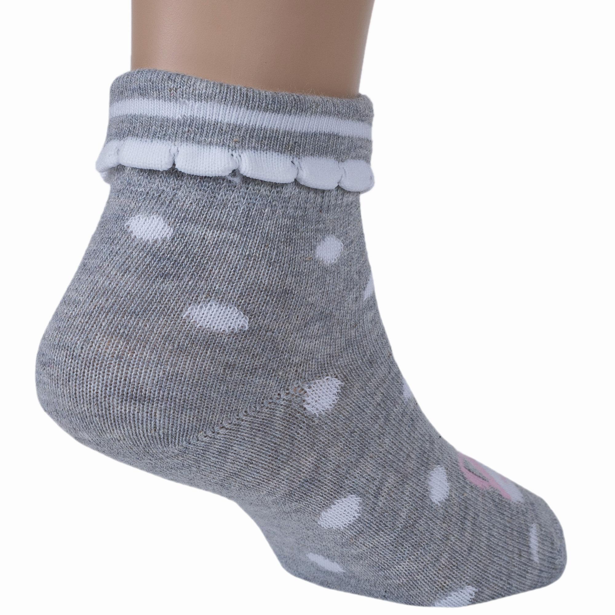 Очаровательные детские носки в серо-белых тонах в крупный горох и принтом в виде милого лисенка. Они отличаются отворотами с рельефным краем и сделаны из мягкого и приятного к телу хлопкового трикотажа.