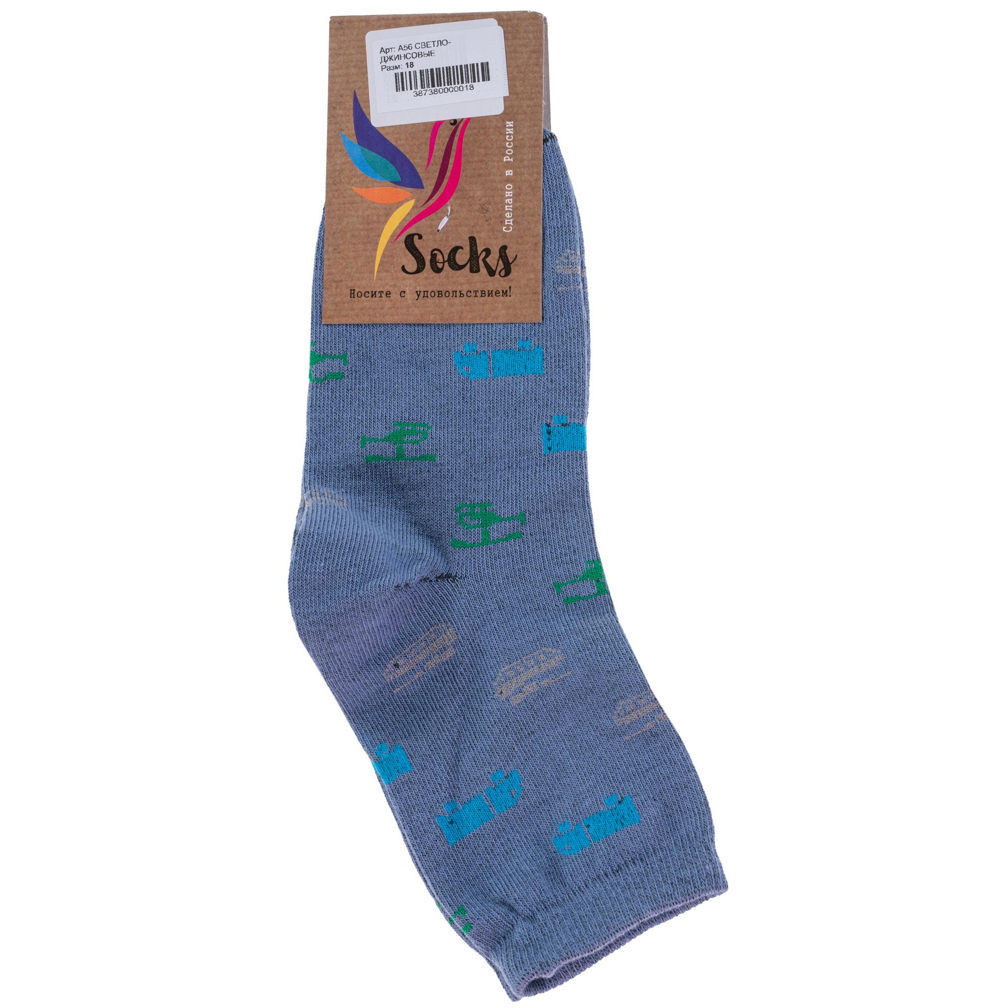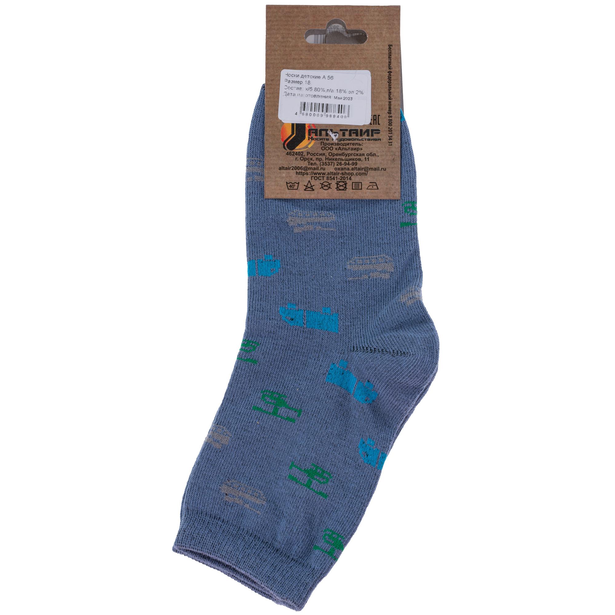 Круглогодичные укороченные детские носки, цвет синий-джинс, повседневные, шов обычный (не бесшовные), принт (рисунок): транспорт, с узором, состав: 80% хлопок, 18% полиамид, 2% эластан, арт. А56. Производитель «ООО Альтаир, г. Орск, Оренбургская обл, Россия» под брендом «Альтаир».