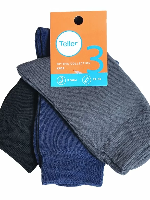 Комплект детских носков Teller Optima из 3 пар, OA33300, ГРАФИТ, СИНИЕ и ЧЕРНЫЕ 304