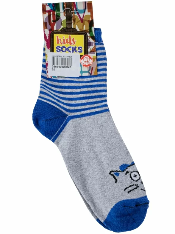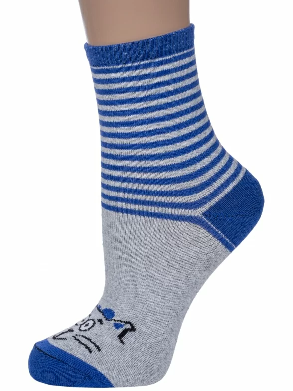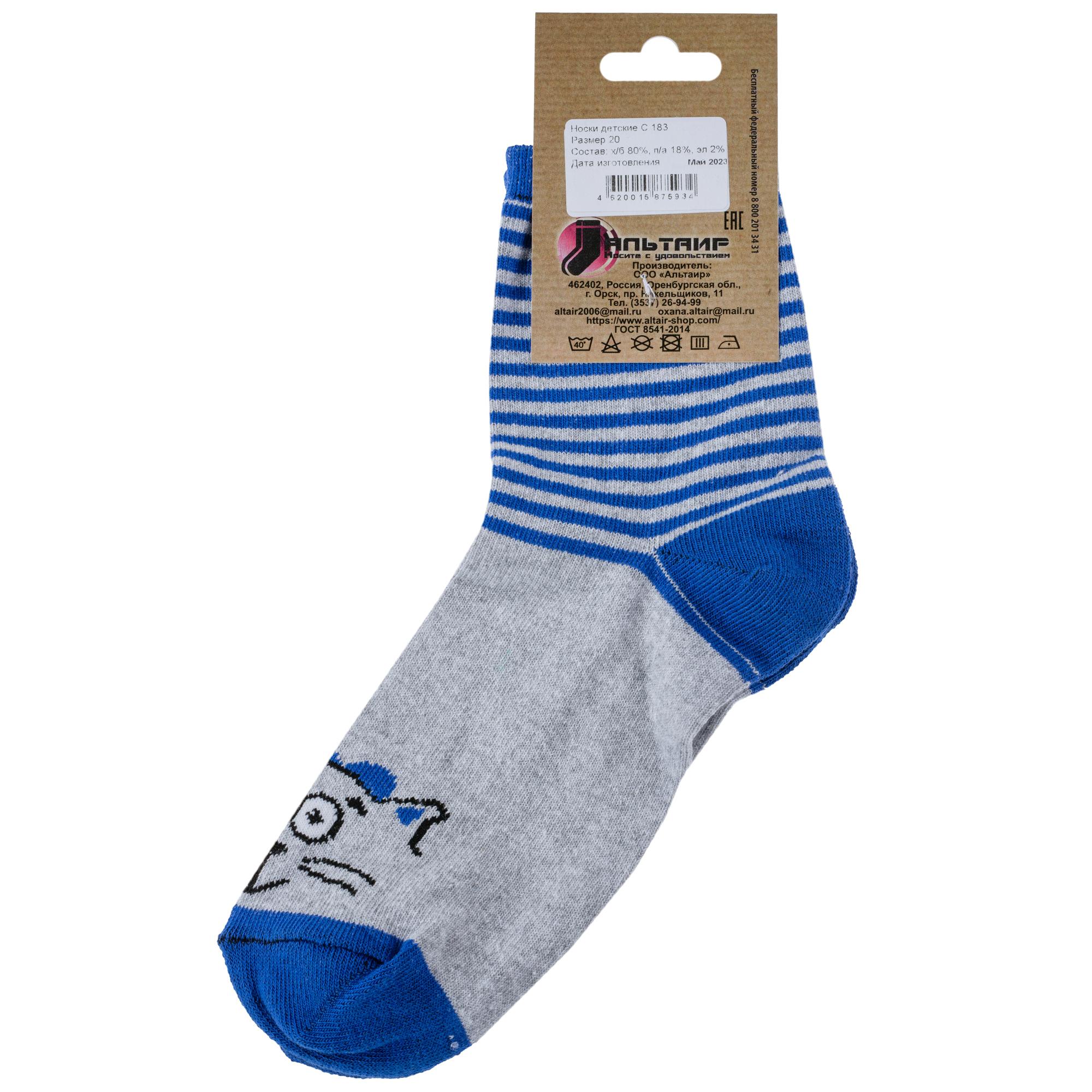 Круглогодичные средней длины детские носки, цвет синий-многоцветные (мультиколор), повседневные, шов обычный (не бесшовные), принт (рисунок): животные, с узором, состав: 80% хлопок, 18% полиамид, 2% эластан, арт. С183. Производитель «ООО Альтаир, г. Орск, Оренбургская обл, Россия» под брендом «Альтаир».