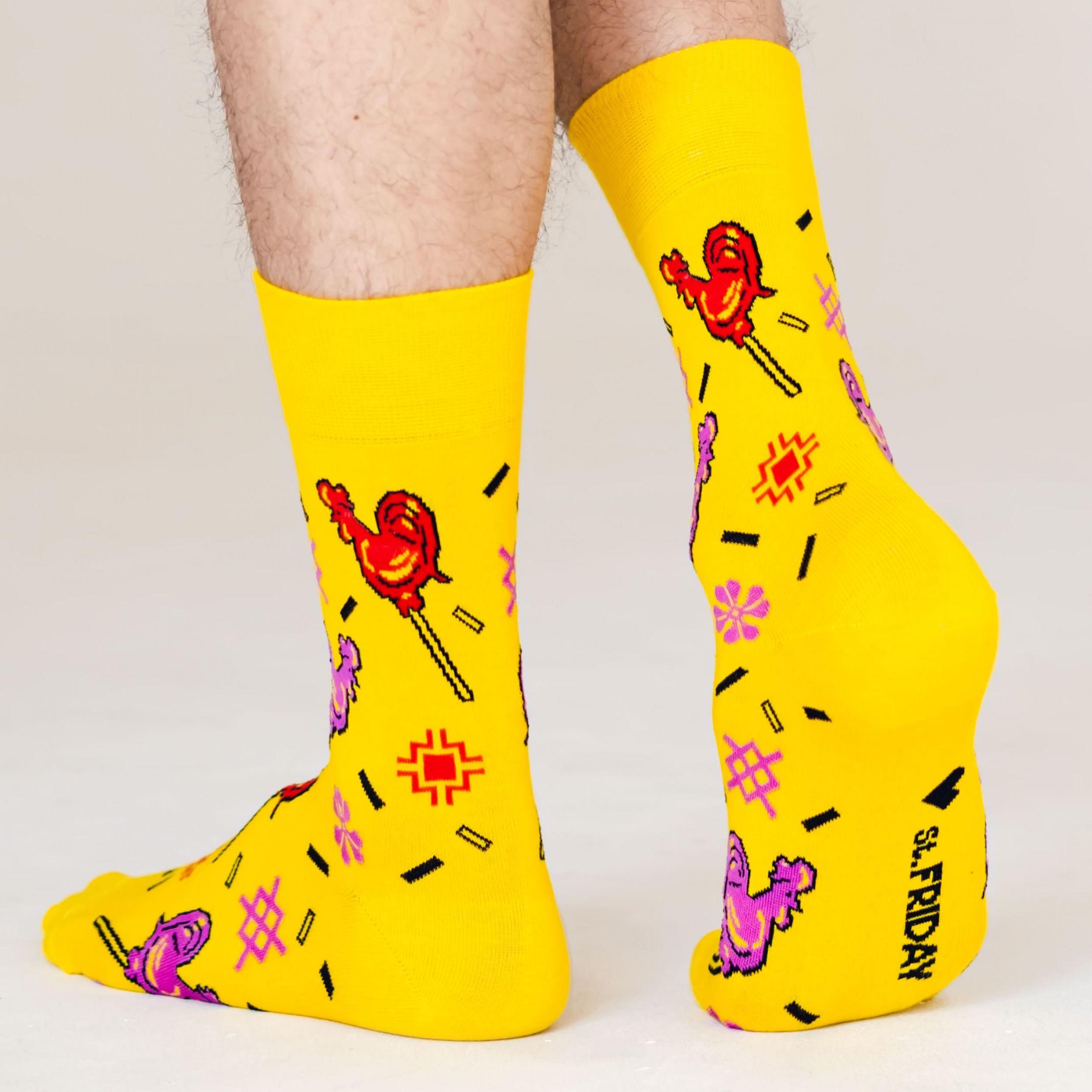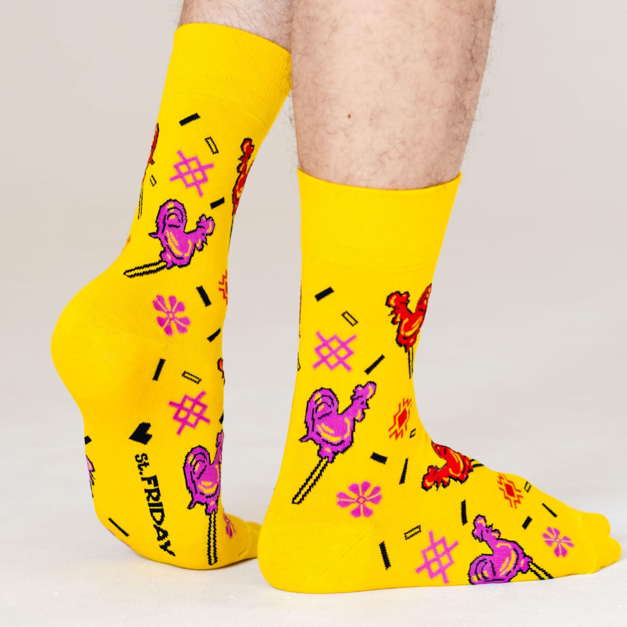 Носки вяжутся на фабрике в Санкт-Петербурге, отсюда в названии бренда и St. Создатели торговой марки помогают нам разбавлять скучные офисные будни своими необычными моделями в стиле Casual Friday - когда можно ослабить дресс-код и повеселиться!