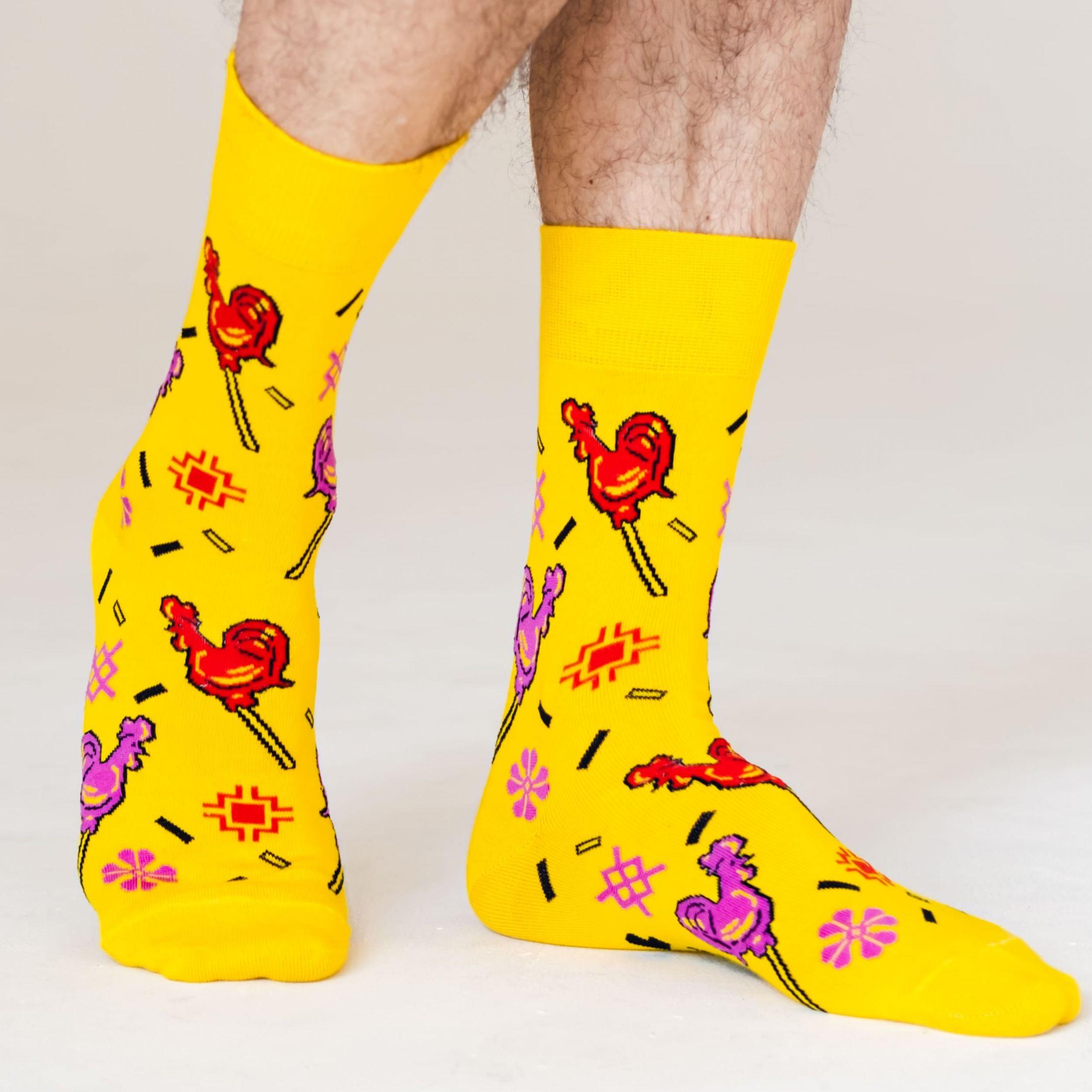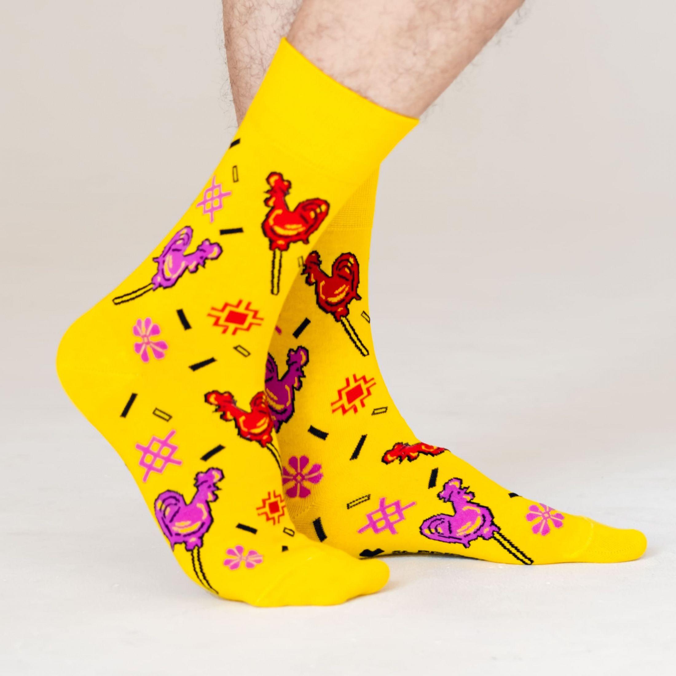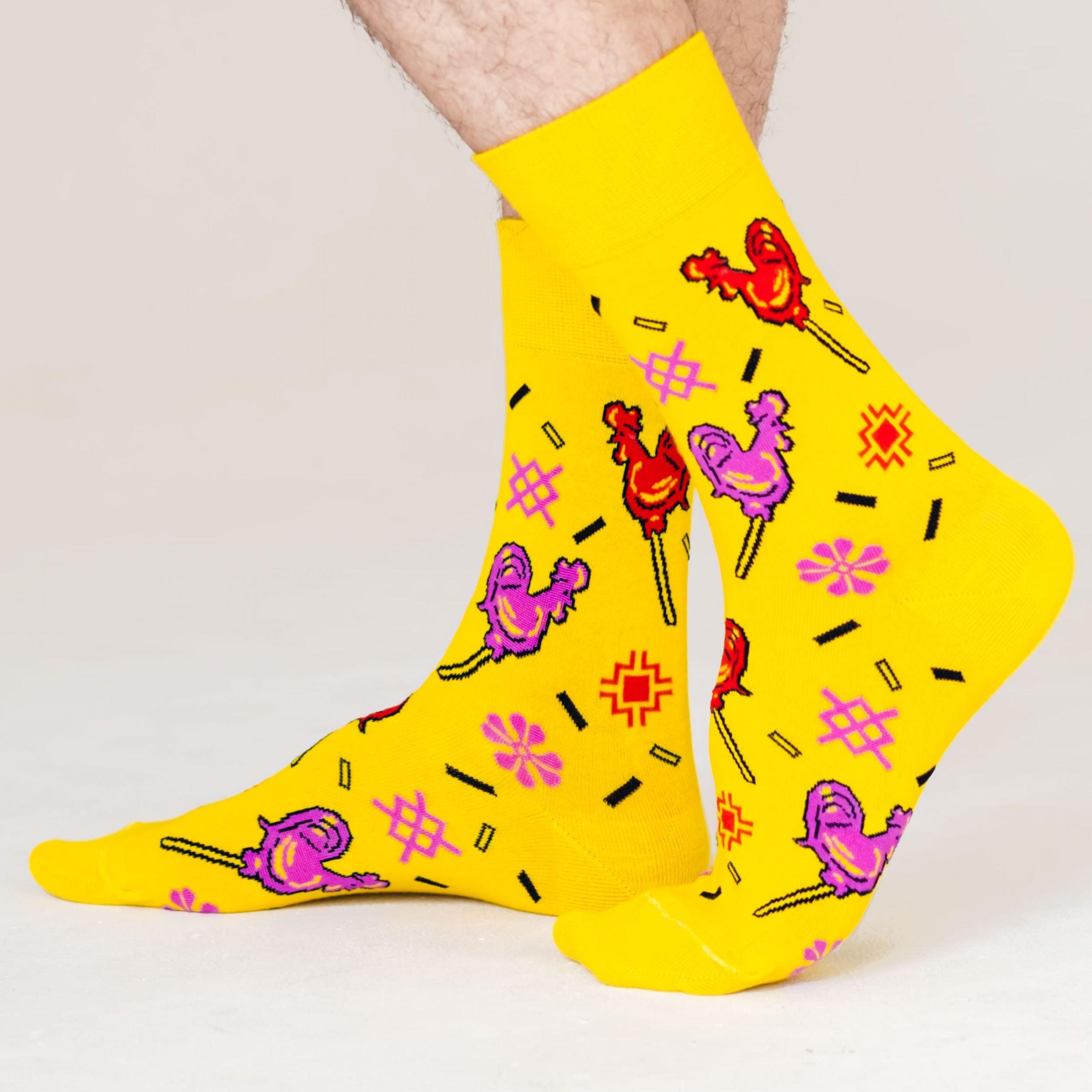 Носки унисекс "Гладкий и пунцовый, сладкий, леденцовый!" с принтом в виде сахарного петушка на палочке - именитый леденец заслуживает персональное место на носках!
