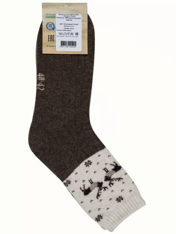 Носки из 100% монгольской шерсти (Монголка), 01172, ШОКОЛАД