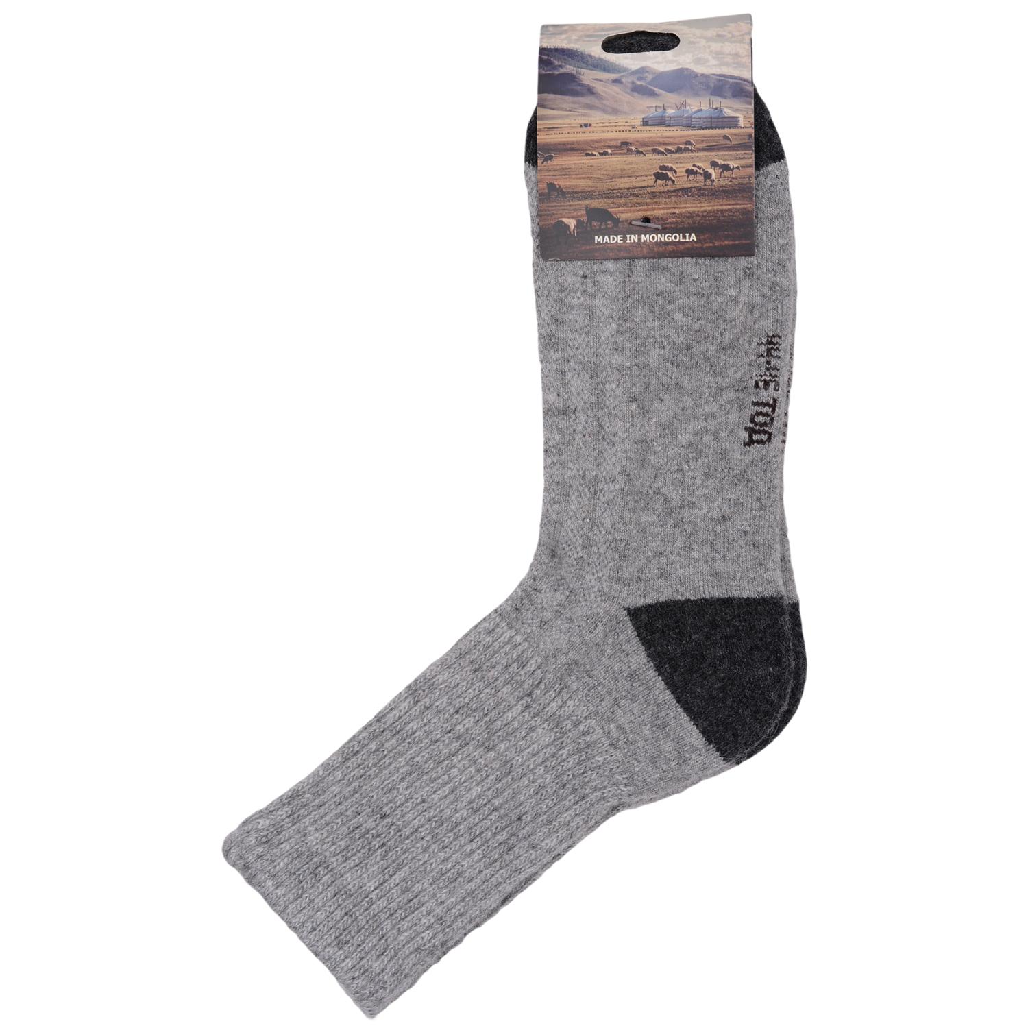 Шерстяные носки из Монголии. Состоят на 70% из шерсти и на 30% из вискозы. Изделия плотные, качественные и износостойкие. Сохраняют свою форму, не вытягиваются. Идеально подойдут для зимних прогулок. Подарят тепло и уют в самые суровые морозы. Модель выполнена в сером цвете, пятка и мысок контрастного темно-серого цвета. Рисунки и узоры отсутствуют.