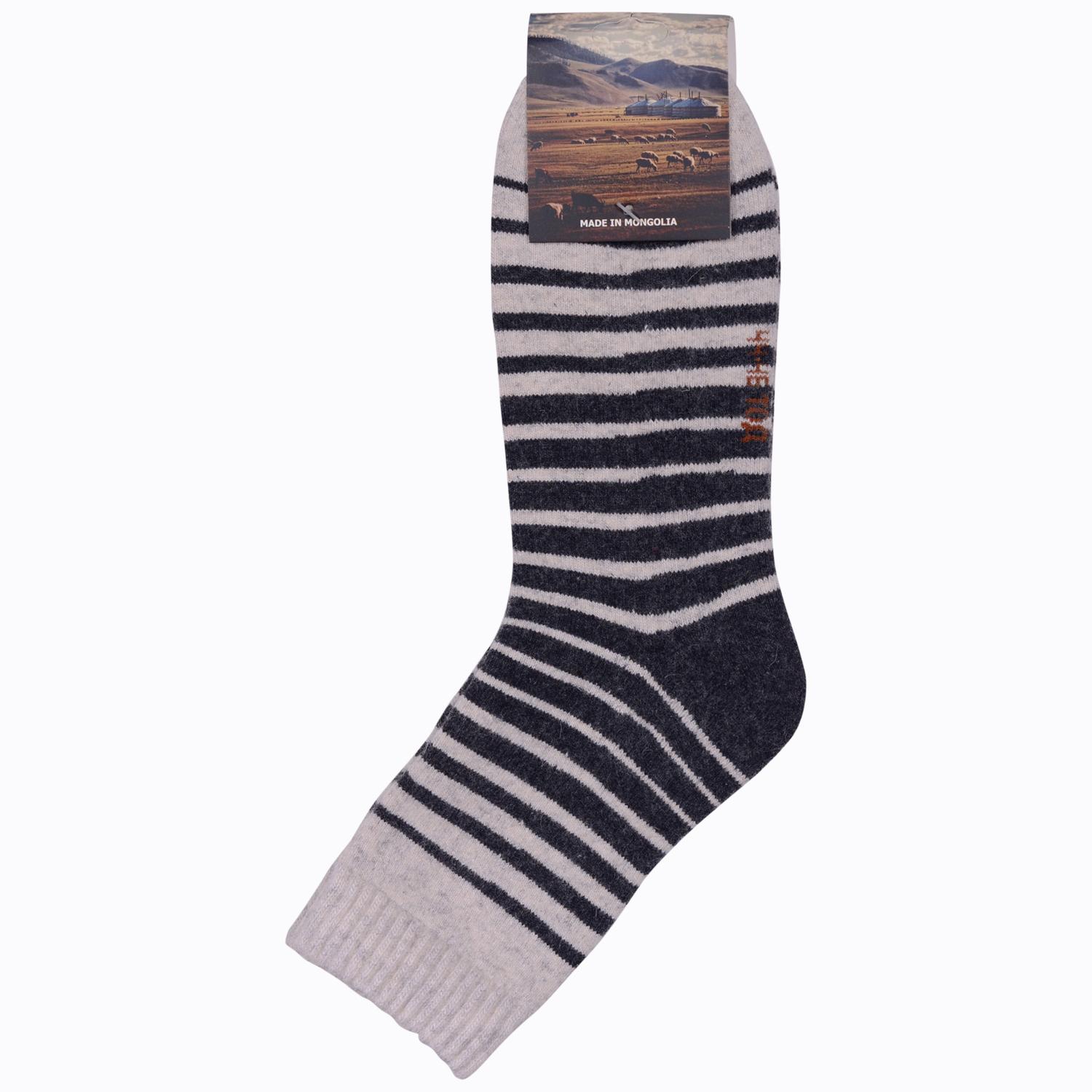 Теплые носки из Монголии в полоску подойдут мужчинам и женщинам.
