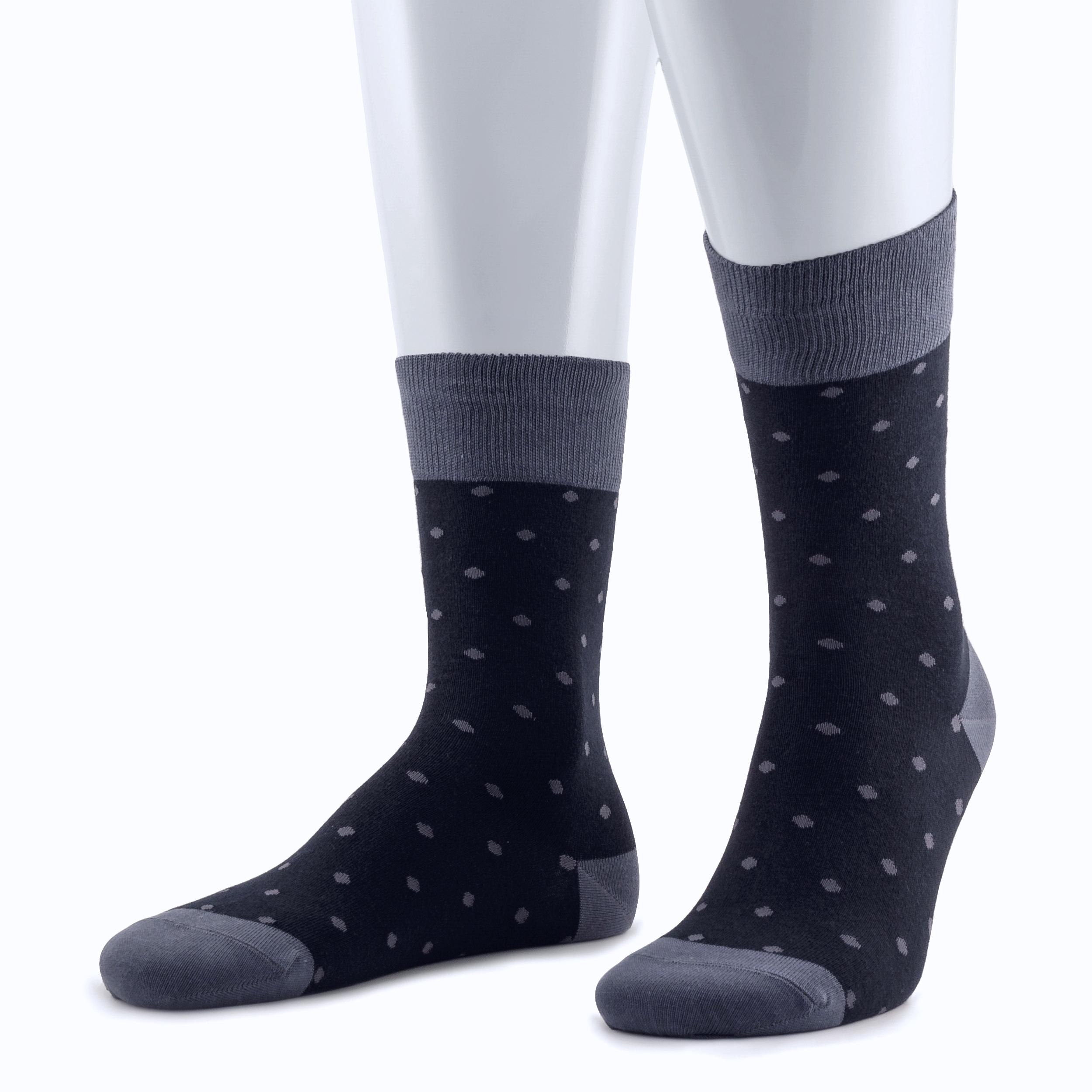 Модель средней длины с плоским малоощутимым швом на мыске и с двойным бортом (манжетом резинки); украшена принтом в горох.