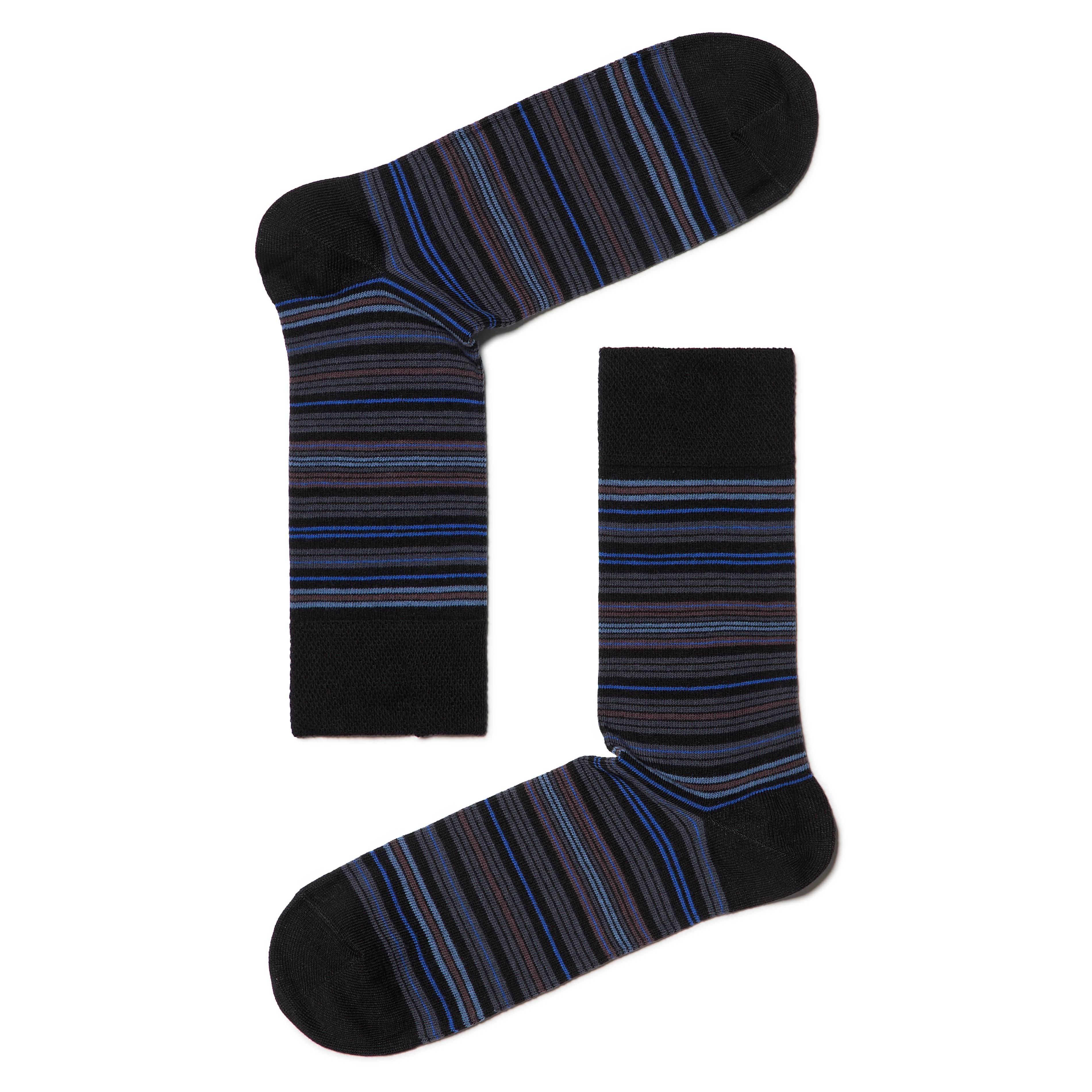 Удобные мужские носки в тонкую разноцветную полоску, которую дополняют однотонные контрастные детали. Носки отличаются удобными мягкими манжетами и связаны из качественного, приятного к телу трикотажа.