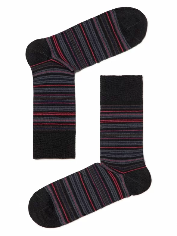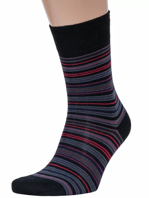 Удобные мужские носки в тонкую разноцветную полоску, которую дополняют однотонные контрастные детали. Носки отличаются удобными мягкими манжетами и связаны из качественного, приятного к телу трикотажа.