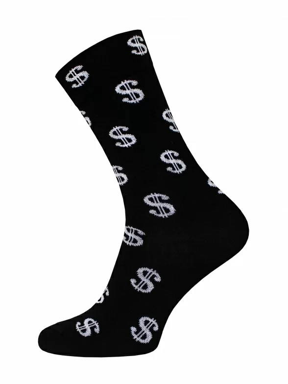 Мужские носки сделаны из хлопка с добавлением полиамида и эластана. Модель украшена принтом в виде знака доллара.