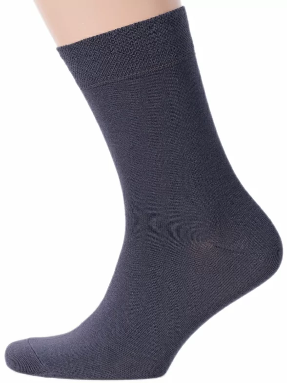 Круглогодичные средней длины мужские носки, цвет темно-серый, классические, шов кеттельный (бесшовная технология), принт (рисунок): однотонный, без рисунков/узоров, состав: 73% хлопок, 25% полиэстер, 2% эластан, арт. 14С2122. Производитель «Брестский чулочный комбинат ОАО, Беларусь» под брендом «Брестские (бчк)».