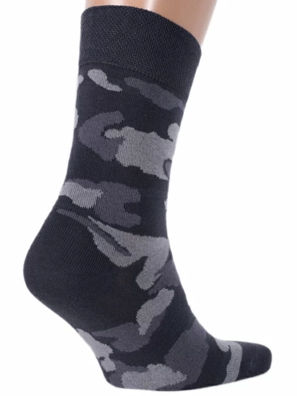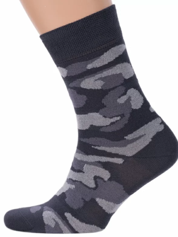 Мужские носки от Бресткого чулочного комбината связаны из пряжи на основе хлопка с добавлением полиамида и эластана. Модель украшена камуфляжным принтом.