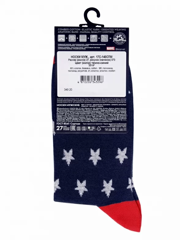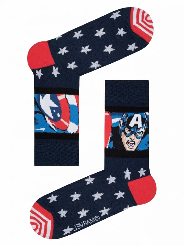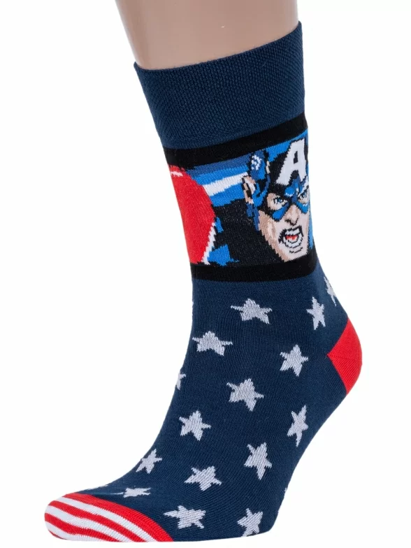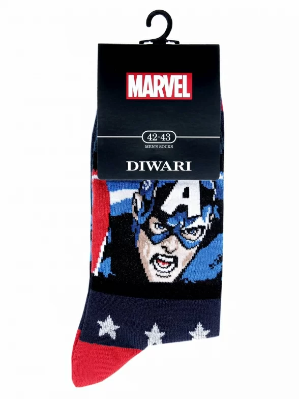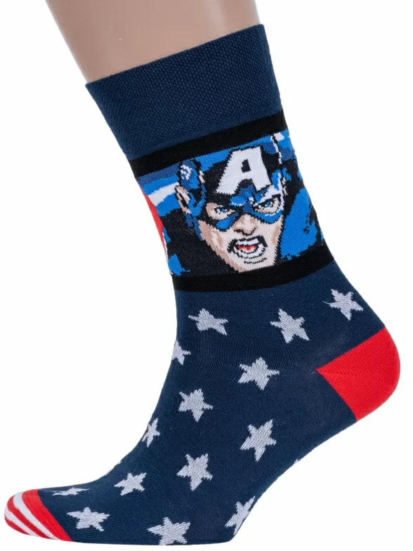 Мужские носки вошли в серию MARVEL от бренда DiWaRi. Станут идеальным подарком для любителей комиксов и Капитана Америки. Связаны из качественного хлопкового волокна. После стирок не теряют яркость цвета и не покрываются катышками.