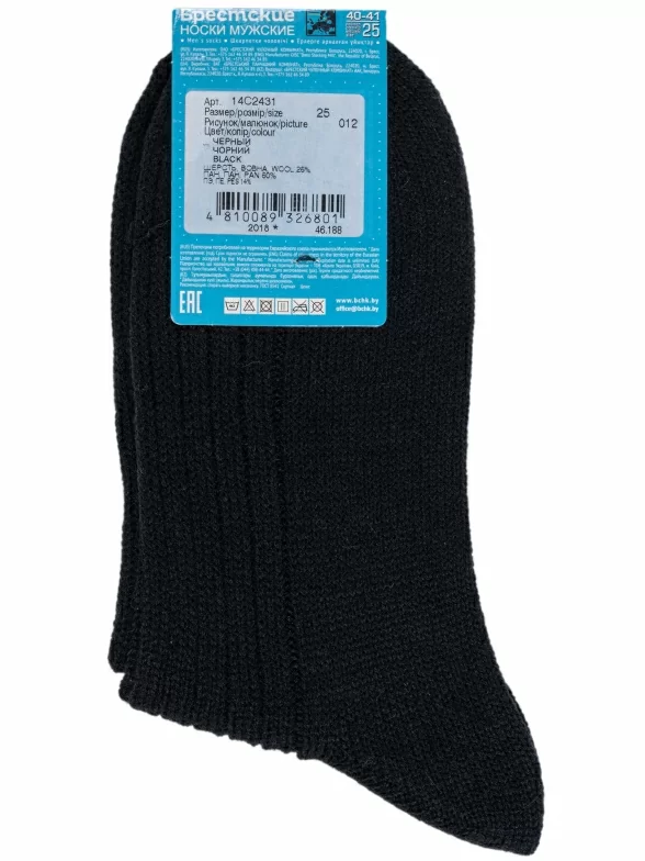 Мужские полушерстяные носки Брестские (БЧК), 14С2431, рис. 012, ЧЕРНЫЕ
